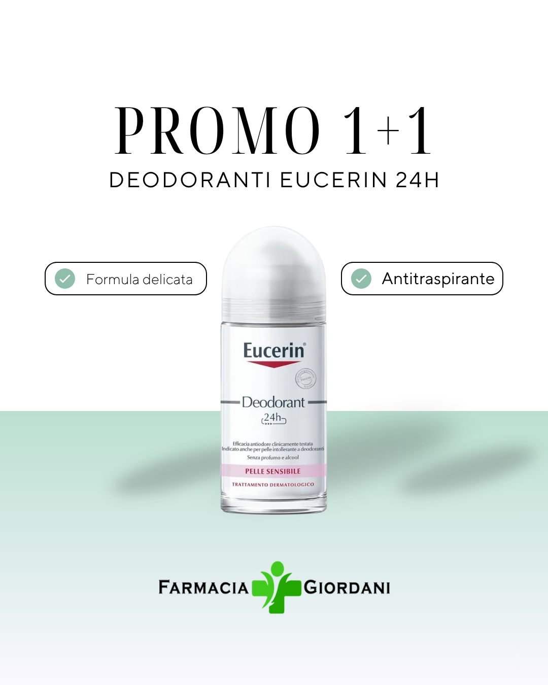 Con la promo 1+1 sui deodoranti Eucerin 24h, acquistandone uno ne ricevi uno in omaggio.